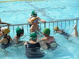 小プールでは1年生が顔をつけて浮く練習をしていました。