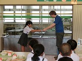 今日は大屋小学校での最後の授業が行われ、給食時間前にランチルームでお別れの式をしました。