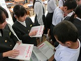 点字新聞の分厚さに驚き 点字の打ち方の説明