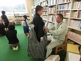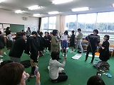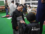 今年も保護者対象の着付け教室が行われました。地域の先生に着付け方を習いながら保護者の皆さんも一緒に練習しました。