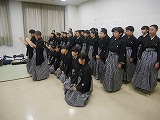終了後、これまで指導していただいた輪島まだら保存会のみなさんに対して子どもたちが感謝の挨拶を行いました。また、着付けやいろいろな面で子どもたちを支えてくれた保護者のみなさんにも挨拶をしました。