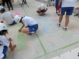 グループで道路に輪島の有名な物や、自分たちの将来の夢を描きました。