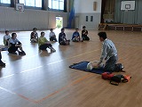 水泳学習も始まり、夏休みのプール開放時に保護者の対応が必要となるかもしれないことから、職員・保護者対象の講習会が行われました。