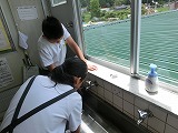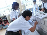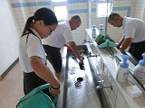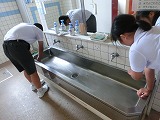 6年生が家庭科で手洗い場の掃除活動をしました。汚れがなかなかとれない箇所をていねいに掃除しました。いろいろな道具を工夫して使い、大変きれいになりました。