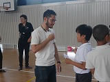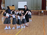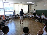 1・2年生と自己紹介の後、いくつかのフルーツの正しい発音を習い、フルーツバスケットをしました。