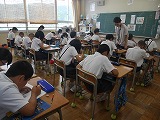 自己紹介の後、校長先生の仕事や校長室にあるものを見て質問しました。