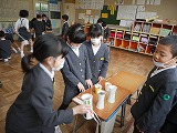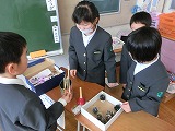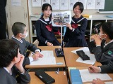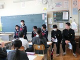 中学生は文化祭や体育祭、職場体験などについて英語で説明をしました。それについて5年生が英語で質問しました。その他にも中学校についていろいろ質問しましたが、中学生は優しく応えてくれて、5年生はうれしそうでした。