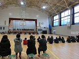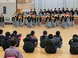 来年1月12日の成人式に参加する為のリハーサルが行われました。着付けボランティアの保護者の方々にもご協力いただきました。リハーサルには、ボランティアの方と6年生も参観しました。