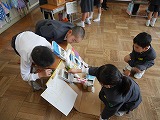 1年生はインフルエンザのために延期になっていた「秋のお楽しみ会」を行いました。先月、2年生「秋のお宝祭り」に招待してもらったお礼に、今回は2年生を招待しました。