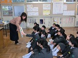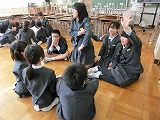3・6年生では、3年生が6年生クイズをしました。6年生は楽しそうに答えていました。
