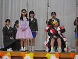 さて、出し物の最後は6年生の「大屋三銃士」です。衣装から小道具まで気合いの入ったもので、さすが6年生です。