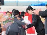 大きな拍手で見送られた卒業生。ちょっと照れ気味?