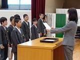 児童委員会の委員長と2年生以上の学級代表が校長先生から任命証を渡されました。少し緊張気味でしたが、全校の前でがんばりたいことを堂々と発表できました。