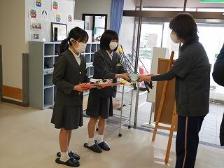 6年生はコロナ禍のために児童全員での訪問ができない中、自分たちでできることを考え、心を込めて製作してきました。担当の方から「大切に使わせてもらいます」と言われた子どもたちはとても嬉しそうでした。