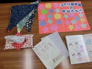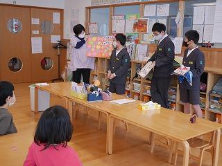 昨日の百寿苑に続き、6年生はみどり保育園児に手作り絵本をプレゼントしました。代表の3名はミドリ保育園出身です。懐かしい先生方とも会えました。