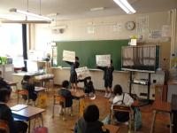 体育委員会の児童が、体育館や運動場の使い方について1年生に教えていました。伝える内容の明確化と誰に伝えるかの相手意識がされ、1年生に伝わりやすいようにイラストを使う工夫がありました。