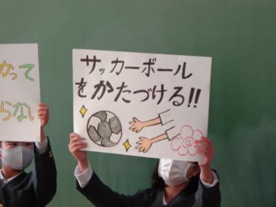 児童会の活動スローガンが「めざせNO1」~笑顔と思いやり~に決まりました。
