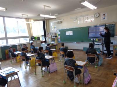 6年生が外国語(英語)の授業していました。ALT(授業の補助をしてくれる外国人)の英語での質問を聞いて、黒板に貼られた英語表記の中から自分で選び、答えていました。