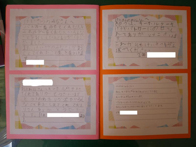 先日交通安全指導をしていただいた輪島署の皆さんに、1.2年生がお礼状を届けました。