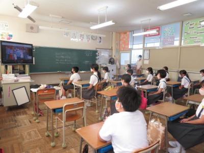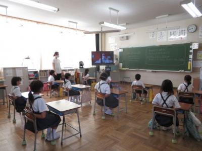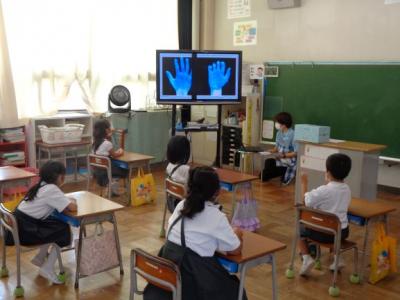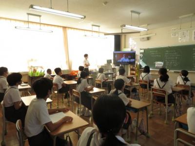 2年生がボッチャをしていました。思い通りの場所に玉を投げるのはとても難しく(先生もやってみました)、パラリンピックの選手の努力が子どもたちにも理解できたはずです。
