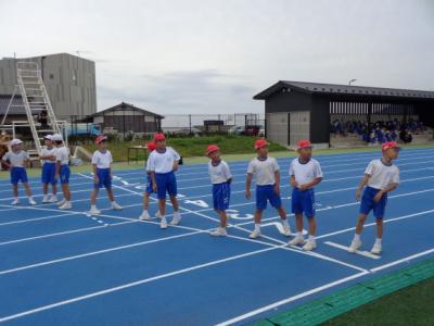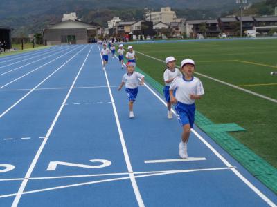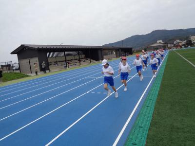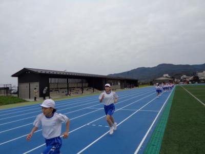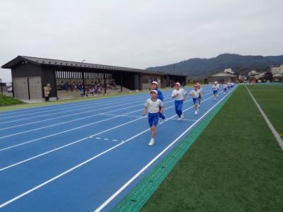 今年は開催場所をマリンタウン陸上競技場に変更し、児童が目標を立てやすいようにランク制を導入しました。