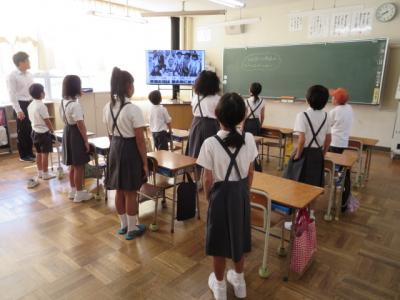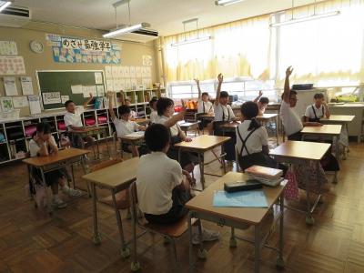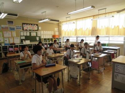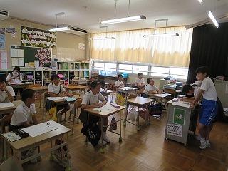 『平和の鐘』を歌う明るい声が学校中に響いていました。今日は図書の本の借りかえをしたり、2学期のお楽しみ会の相談をしたりしたそうです。完成した宿題や作品も集まってきていました。2学期もみんなそろって元気にむかえたいものです。