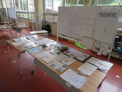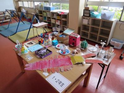 工作や自由研究の作品もそろいました。1つ1つに工夫や努力、それぞれの興味のあるテーマが感じられて、見ていて楽しいです。