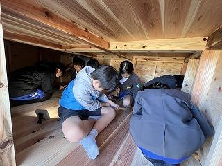 今日は秘密基地づくりの第2回目。今日は壁と床の仕上げをしました。
