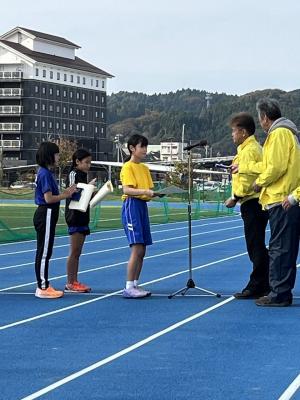 23日(木)にマリンタウン競技場で、第57回輪島駅伝競走大会が開かれました。陸上、ドッジボール、バスケット、野球など多くのスポーツ少年団チームがひしめく中で唯一、学校チームとして、6年生の男女4人が出場しました。