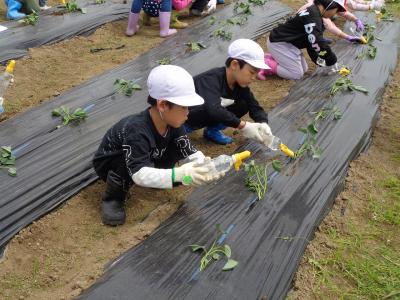 例年、1・2年生は、学校近くのKさんから畑をお借りして、生活科でさつまいもを育てる学習をしています。