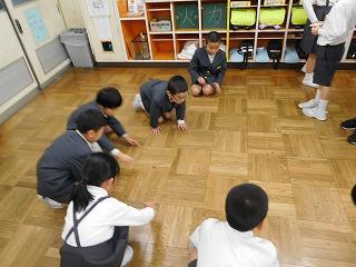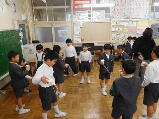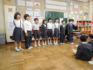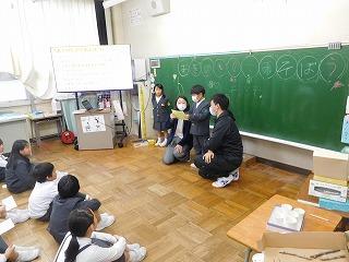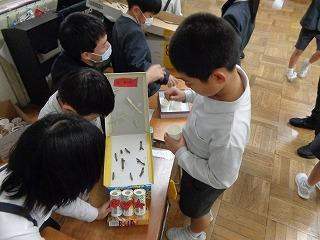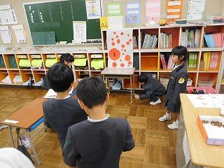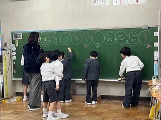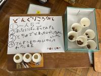 1年生の生活科「あきとなかよし」の学習、今日は2年生を招待しました。集めたいろいろな「あきのもの」で楽しいゲームを考えてつくりました。