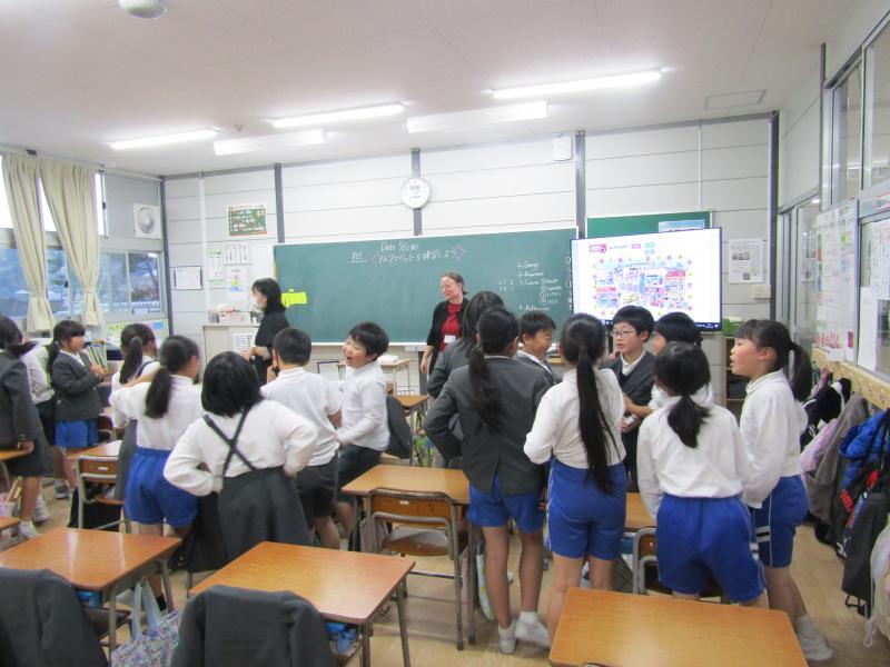 3・4時間目は1・2年生が岩本さんの人形劇と