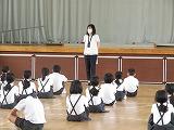 運動会練習の真っ只中です。1~3年生のダンス練習では、低学年リーダーの3年生が下級生に踊りのお手本を見せていました。