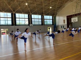 6年生はスタンツ練習を行いました。コロナ対策で一人技中心となりますが最高の演技になるようにがんばっています。