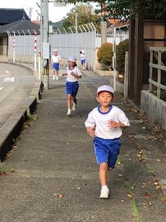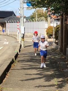 1・2年生はマラソンコースを走る練習をしました。1年生は初めてなのでコースを間違えないように走りました。