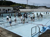 午後から4~6年生でプール掃除を行いました。午後になってお日様も出て、ちょうどよいコンディションになりました。初めての4年生も意欲的に仕事をしていました。5・6年生はプールの中の担当でした。力を合わせて時間内にすっかりきれいになりました。