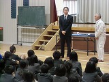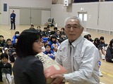 児童代表がお礼の言葉を述べました。 教育長さんもおいでました。