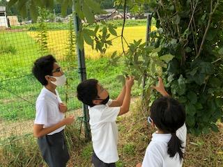 毎朝校門の前に立ち、登校する子どもたちと短い会話をすることが楽しみでもあります。栗やススキをもって来てくれる子どもたちがいました。