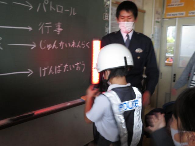 3年社会科の学習「地域で見かける警察署の仕事」の講師に、大屋駐在所のお巡りさんを招いて、勉強をしました。毎日の仕事や事故や事件があったときにどのようなことをするのか、また、休みのときはその代わりとして誰か仕事をしてくれるのかと、たくさんの事を学びました。