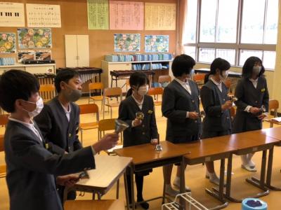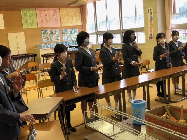 音楽クラブは、22日にミニ発表会を予定しています。ハンドベルで「きよしこの夜」などを練習しました。音が重なりきれいな響きが広がりました。発表会が楽しみです。