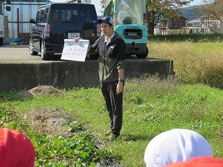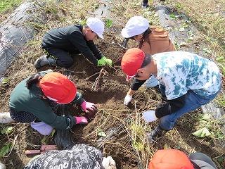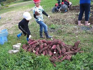 第1日目の様子です。1・2年生がさつまいも掘りに出かけました。先生の話をよく聞いて始めます。