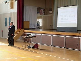 5年生は郷土を愛する心について考える『親から子へ、そして孫へと』で、まだらの指導者である加治さんに伝統文化の継承についてお話ししていただきました。