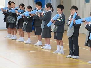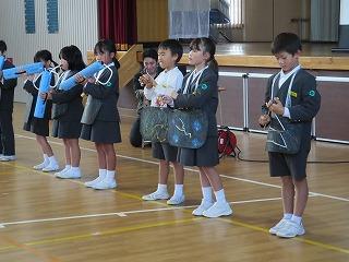 鍵盤ハーモニカ、トライアングル、鈴の合奏です。速さを合わせてきれいな演奏ができました。