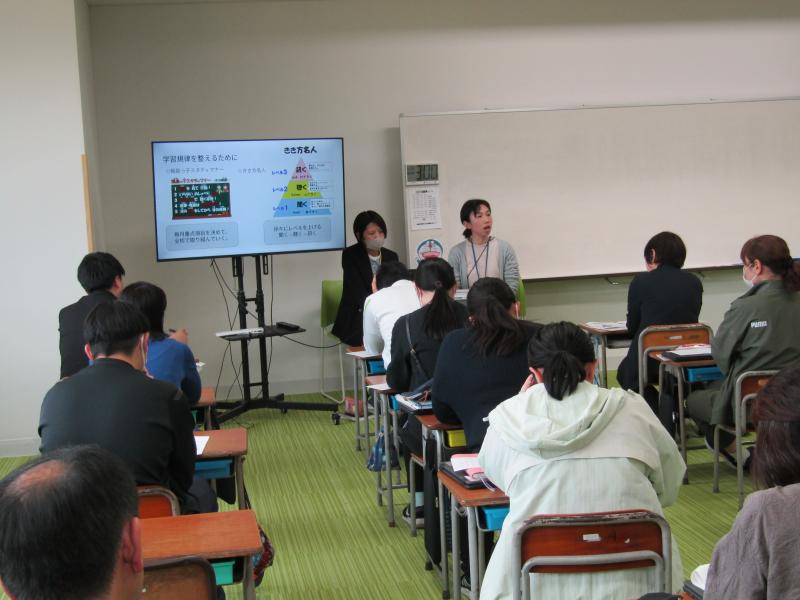 はじめに研究主任からの説明を聞いて各学年で話し合いました。