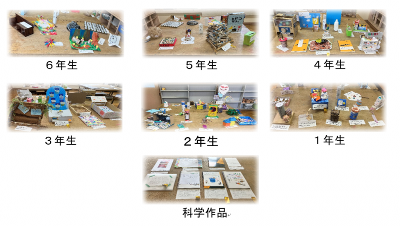 夏休みの子どもたちの力作,「科学作品」と「工作・手芸作品」等を,4日(月)から6日(水)の期間,図工室で展示いたしました。