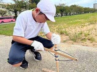 身近にあるものを利用して「動くおもちゃ」を作り、そのおもちゃを持ち寄って「おもちゃランド」を開催する生活科の学習です。昨年度から、令和7年度に3校が統合することを見据えて、相見小と宝達小と3校合同で、「おもちゃランド」を開催しています。