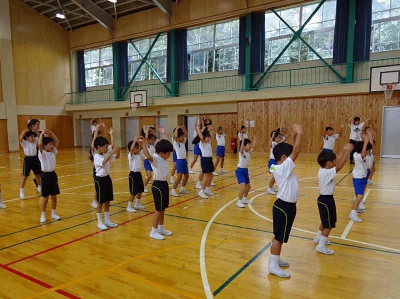 この日は、低学年と高学年にわかれて、地域ボランティアの方に指導していただきました。はじめは踊りを少し忘れている児童もいましたが、ご指導を受けながらみるみる上手になっていきました。