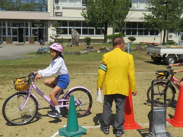 25日に、交通安全協会、交通安全推進隊、北川尻交番、宝達志水町環境安全課の皆様のご協力をいただき、交通安全教室を開催いたしました。1・2年生は主に道路での安全な歩き方、3年生以上は主に自転車の安全な乗り方について、説明を聞いたり、模擬コースで実地に指導をいただいたりしました。