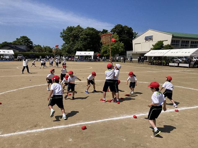 11月19日に、来年度開校予定の「押水小学校」と「志桜小学校」の2校に分かれて、5・6年生がミニ運動会を開催しました。種目は、玉入れ、大玉転がし、綱引き、リレーの4種目で、押水第一小の児童は、宝達小、相見小の児童とペアやグループになって、競技をしました。