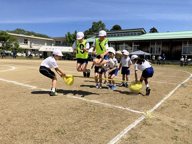 これまでもいろいろな行事で交流し、顔見知りになっている児童も多く、チームワークばっちりで協力して頑張ることができました。結果は、「押水小学校」と「志桜小学校」が全くの同得点で引き分けでした。5年生は統合小の最高学年としての心がけや振る舞いを、6年生の姿から学びとることができ、統合前の素晴らしいプレ競技大会になりました。